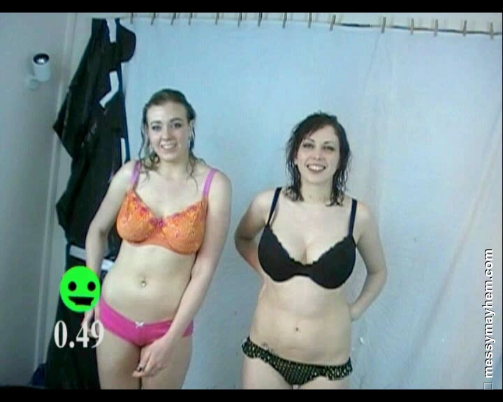 Episode 7 Part 2 has just materialised itself onto http://www.messymayhem.com Sapphire wants to get her own back on Louisa for turning her into an egg in Part 1 but will Louisa get 5 questions right in under a minute avoiding words beginning with the letter R and turn the tables? The loser is treated to pink, green and yellow gunge with particular attention paid to the boobs and bum. Also in a bizarre twist the victor removes her bra and the loser rubs her slimy head between her boobs.