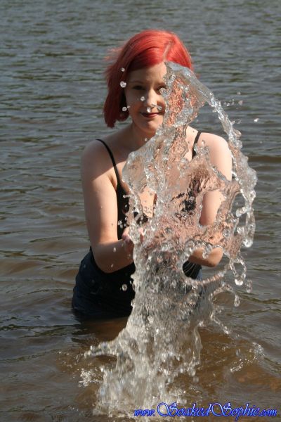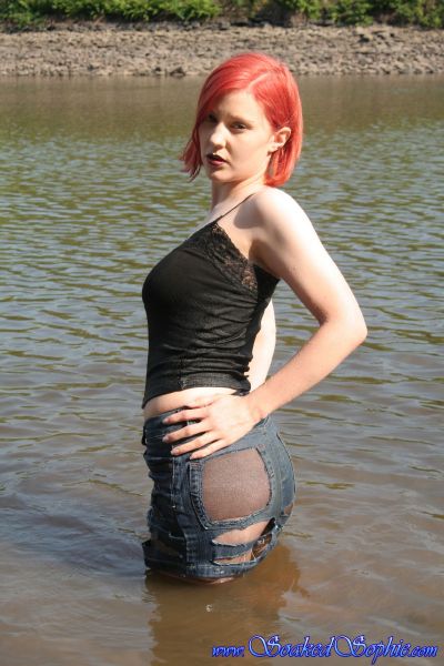 I sit in the water soaking my tights and denim mini skirt then wade in up to my waist and splash around soaking my outfit :)