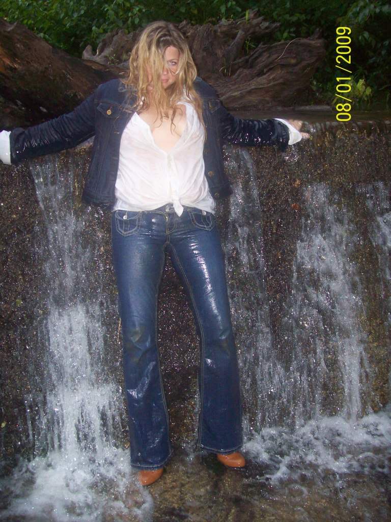 I just love that pic of you...! your cheeky smile, your long hair clinging to your wet shirt, your sexy wet jeans covering your shapely hips and legs, a hint of sexy midriff....... PERFECT!