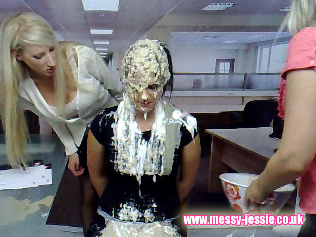 Cherry and I are working late in the office when cleaner, Louise knocks over our coffee! We decide she need a lesson so we tie her up and gunge her!