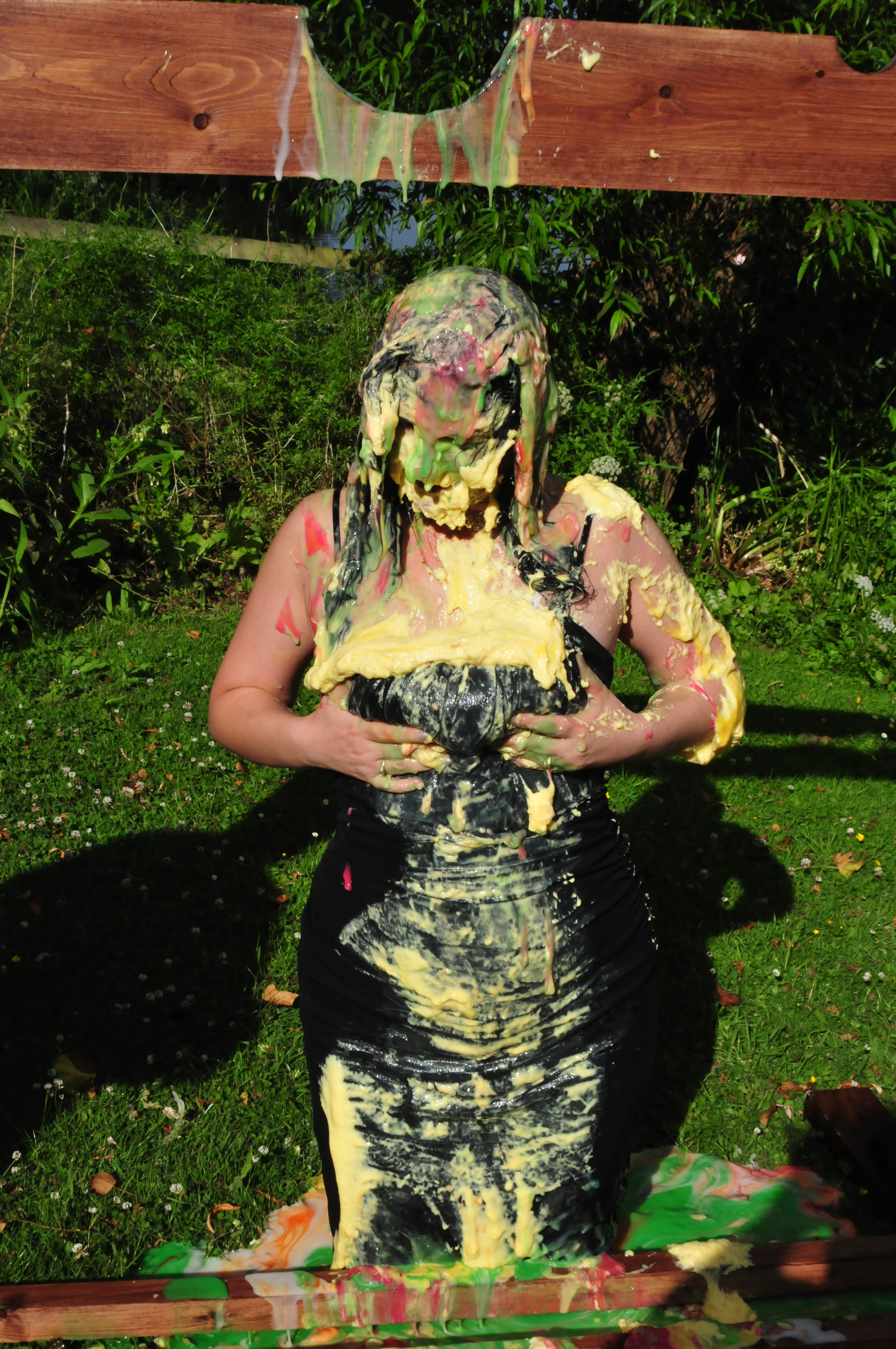 Join D in Pies R Us. D gets all dressed up in her little black dress and high heels as she thinks she is the Employee of the Month. Poor D is told she is to have her picture taken in the Stocks however things go from bad to worse as D gets pied in the stocks. Just as she thinks its over and she is going to be let out a barage of gunge follows with D taking lots of buckets of gunge all over her. This is complimented with several cartons of custard poured inside her dress. Poor D squeels when she feels how cold the custard is on her skin and wants more gunge to warm her up rather than the cold custard. When D gets let out of the stocks she has a few minutes fun playing with the gunge before diving into the Dunk Tank to clean herself off. <br><br>Something for everyone with this clip, Pies , Gunge the stocks and the Dunk Tank........