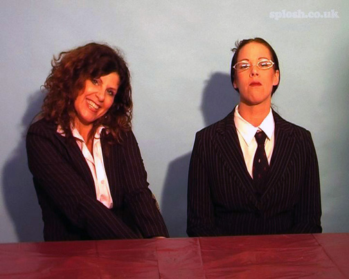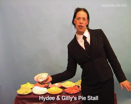 To celebrate the long-awaited (by us anyway) return of TV series The Apprentice, Splosh! Greatest Hits is proud to bring you Gilly & Hydee's version The Pie Apprentice available to download immediately for the first time without membership at http://www.hits.sploshdownloads.com. Originally in two parts, The Pie Apprentice has been edited to make one 26 minute film on sale for just $8 - around five quid! With both clothed bits and full nudity at the end, it's great value - so if you like pies, business suits and birthday suits then it's the perfect film for you.