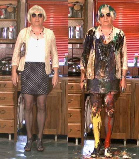 Another Euro lottery but this time I added another element. Inside the 3 handbags was an option to wear some of my wife's clothes to clear up the mess.