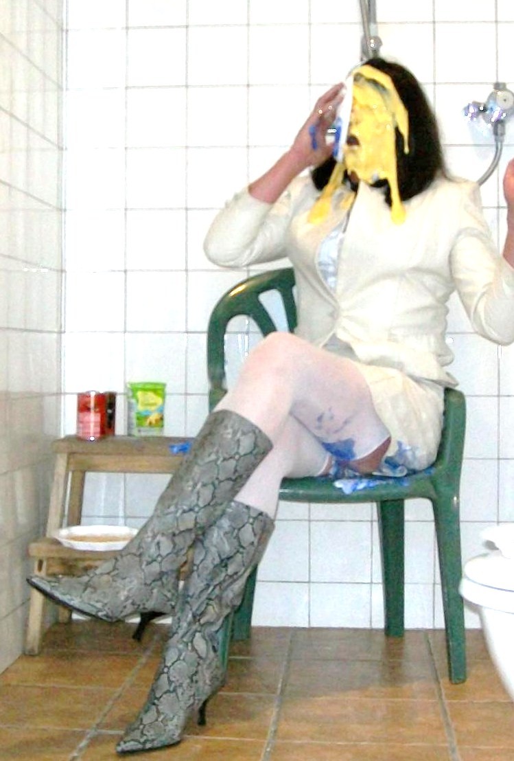 Great gunging, love the white leather and that lovely thick custard. Nice legs as well Lou.