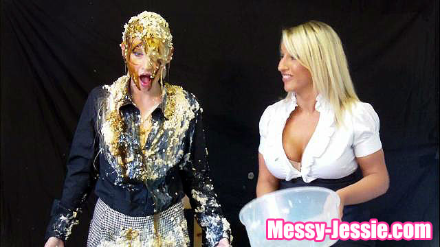 Jessie has been a naughty girl again!!! Her teacher Kelsey calls Jessie into her office for a chat after discovering a video of Jessie playing tennis on the beach. Kelsey decided that Jessie needs to be taught a lesson and pours porridge, honey, treacle and sloppy breakfast cereal in milk, all over Jessie's head, and ruining her favourite school uniform