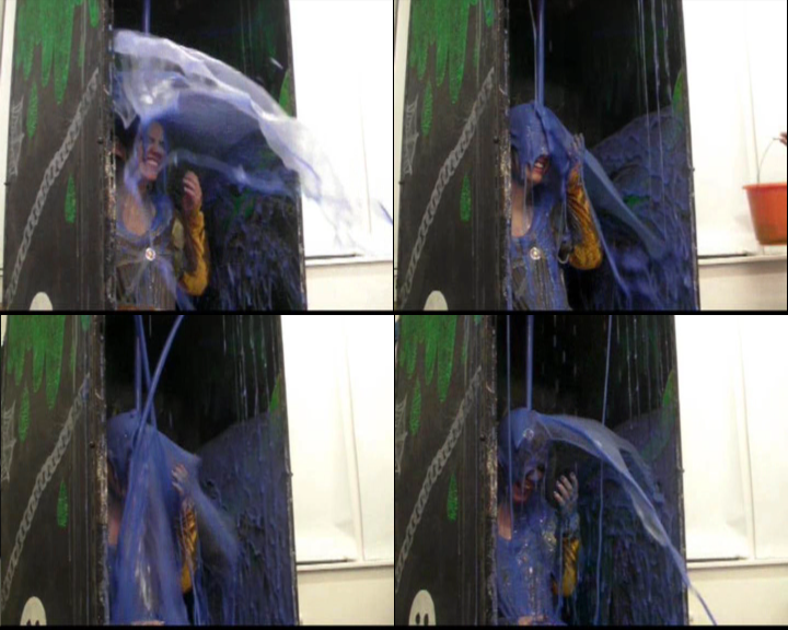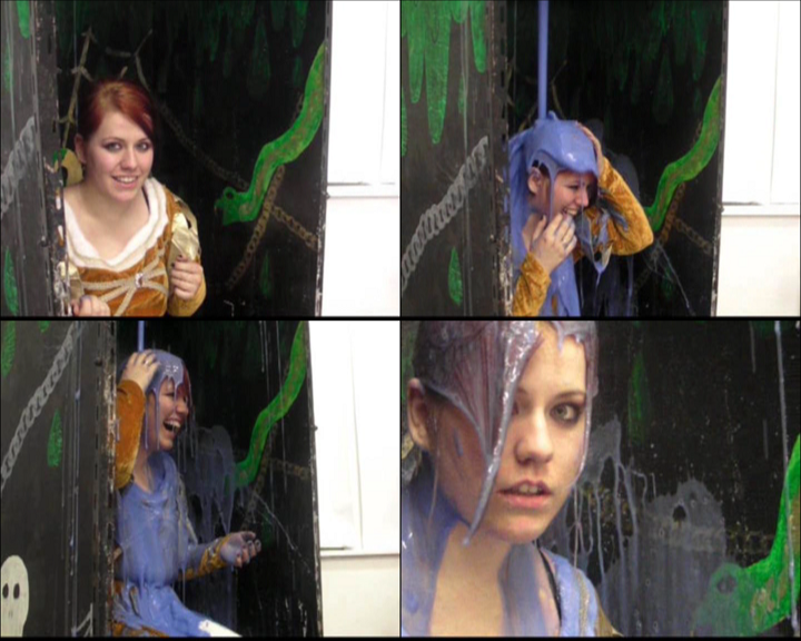 Backstage and SPX footage Race Against Slime – a Fantasy Adventure Game show produced with Lancaster University’s Student Television Station LUTube.TV. This was the fifth and final gunging shot specifically for the show’s title sequence. Some screen grabs and a link to the video on YouTube below. Read on if you’ve any further interest in the origin of the clip, the show it is from, why the hell there’s a costume involved and about other clips to come: