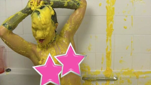 In this new video SweetSophie covers her outfit in lots of thick warm custard. She has heaps of fun pouring it inside her t shirt and in to her jeans making her very aroused indeed :D