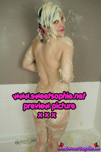These yummy fully naked pictures of SweetSophie covered in cake mixture are available now :D