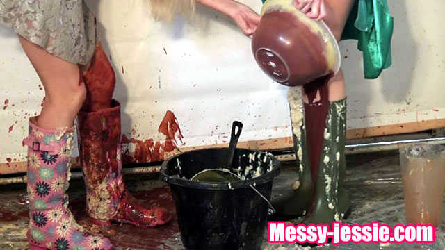 Cherry and I have lots of fun filling our wellies with custard, porridge, beans annd chocolate... And then we get each other messy with contents of the wellies! As Cherry said, it's better than jumping in puddles! We also wear party dresses to compliment the wellies.... It sort of worked!