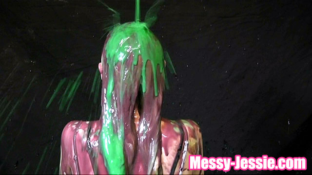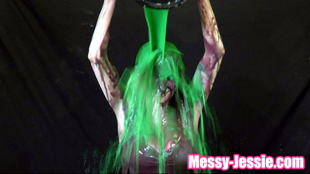 I love my hair because it's so long and blonde and soft, but what happens while I'm explaining... You got it, green slime gets poured all my lovely hair! Not just green, but orange and purple too! But I actually like the feel of the slime, it's sofat and warm, so tip the rest of the buckets over myself!