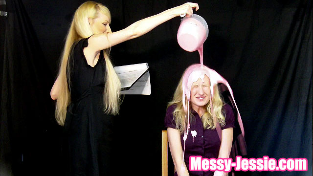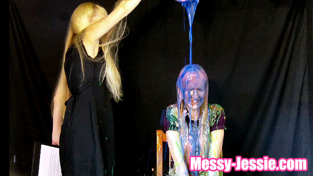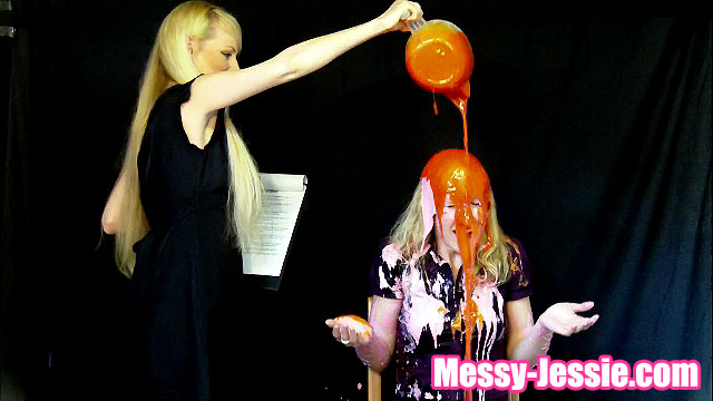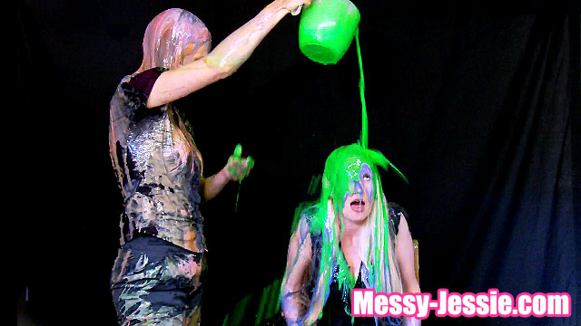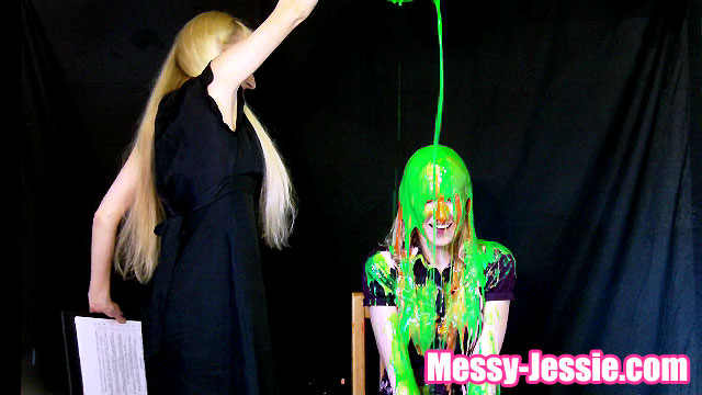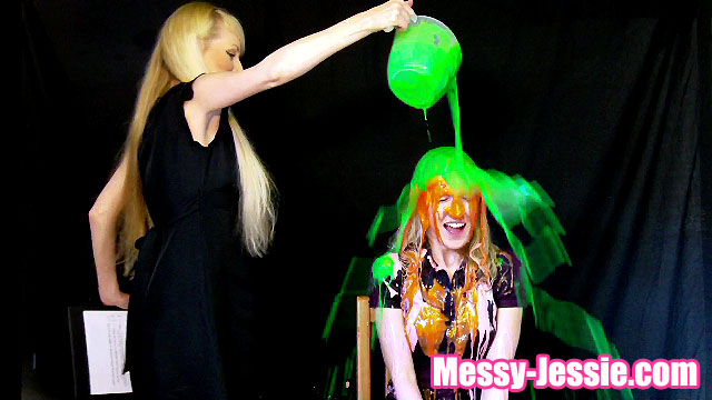 There was of course a tie breaker question, which Annabelle got right, so she got to gunge me too! All of the brightly colured slime really does brighten up my black dress!