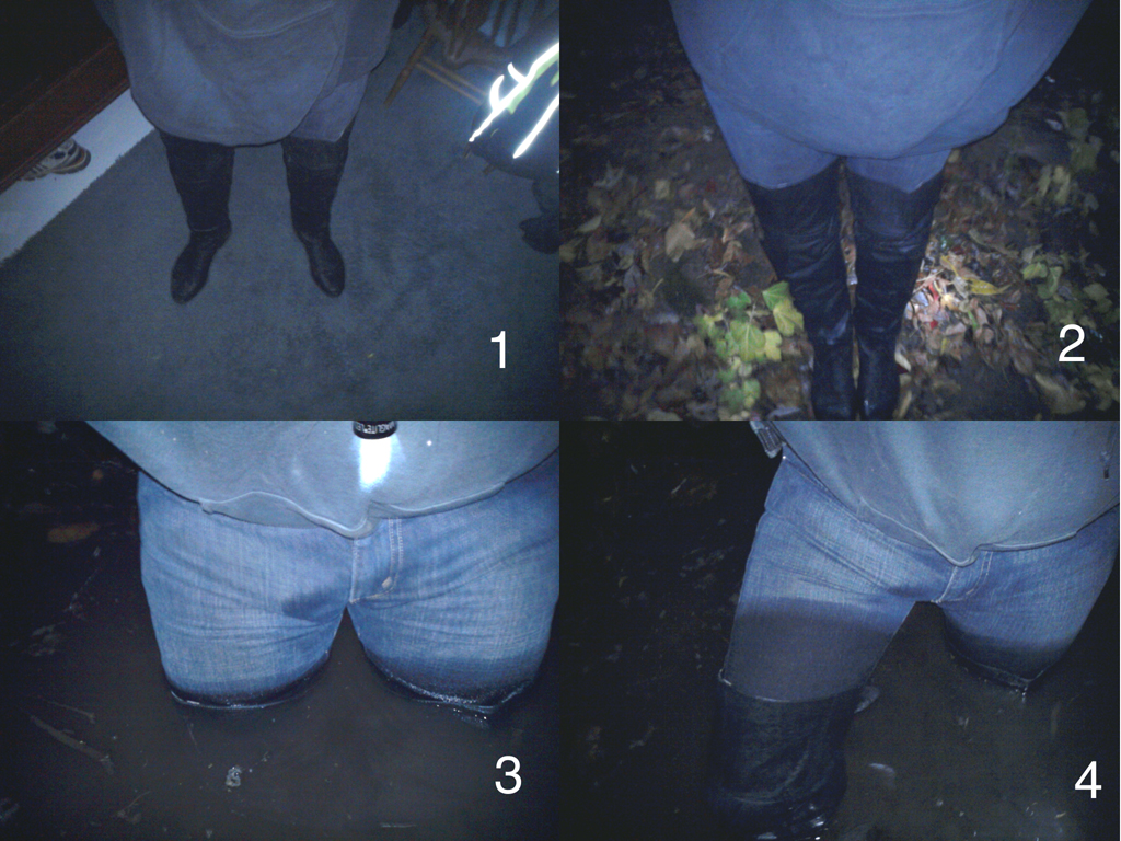 Usually I end up wearing boots, jeans and t-shirt or sweatshirt depending on the temp outside. I have stumbled upon a nice muddy area in the lower part of a local park that comes up to just above knee high to me. I rarely am able to get photo's as I can only walk there after dark dressed in that manner. I usually go in deep enough to eventually start having the water and muck flow in. There are a couple of places that are mid thigh deep so even in my thigh boots it can overwhelm them. I normally wash off the majority of mud in the deeper part of the stream so as to not leave tracks on the street heading back to my house or into my house for that matter.
