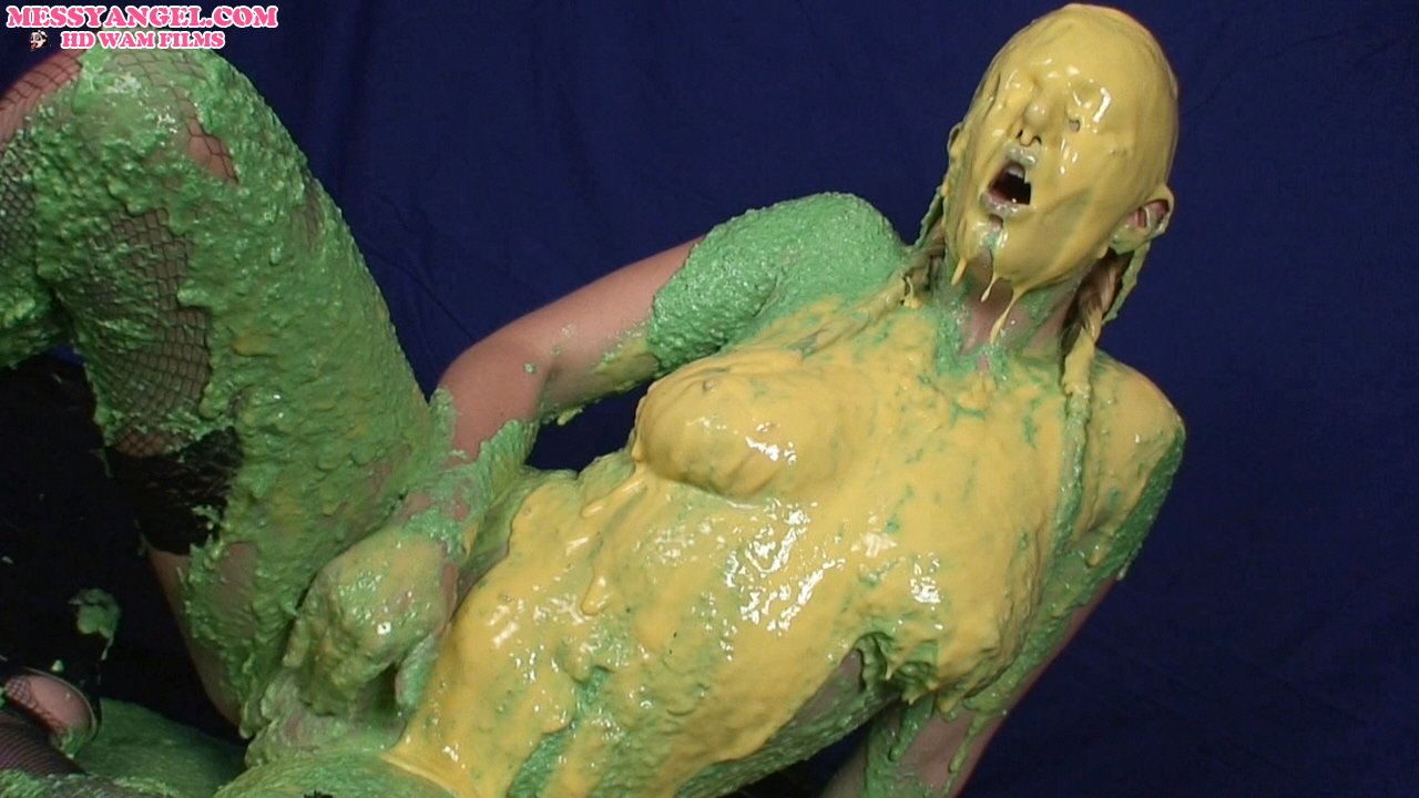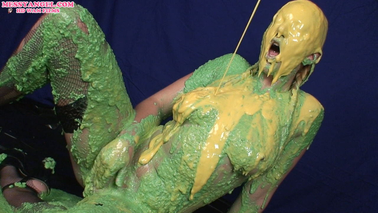 Shay is loving every minute of this and she looks amazing as the slime slowly covers her curvaceous body.