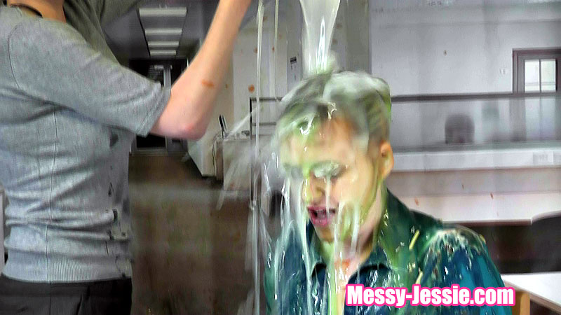 Cherry continues to gunge me with green and purple slime until the suit is unrecognisable! I don't think Cherry will be getting her Christmas bonus this year; or will she?!