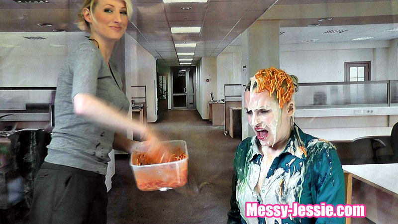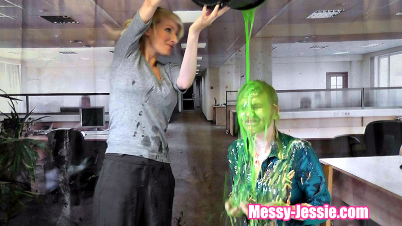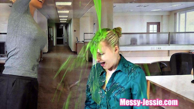 It's about time I got my own back on Cherry after all the mess she has put me through this year! So while she is sat in the office going through her work, some custard comes flying at her from no-where! Cherry is shocked, but carries on with her work anyway. However, just as she settles back in, some green slime is thrown at her.