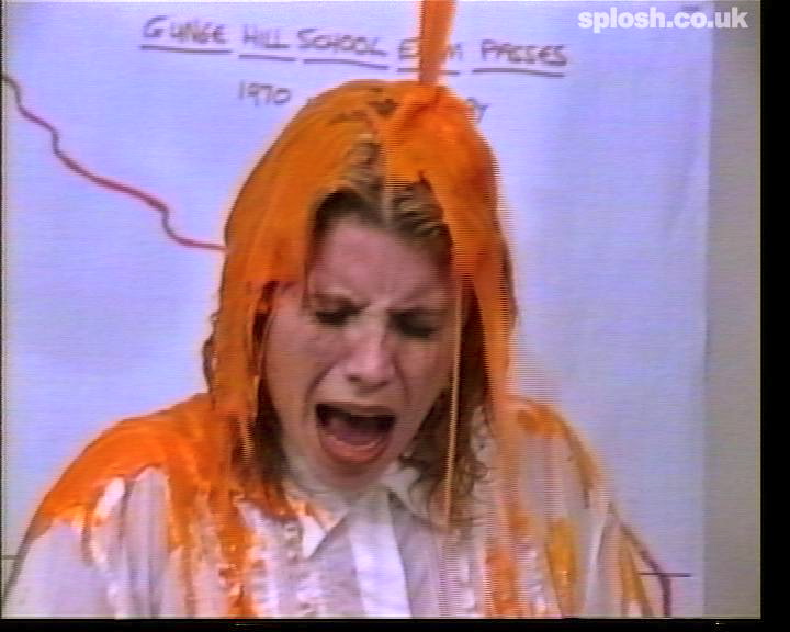 But that's not all, we also pay a visit to Headmistress Helen Hartley's office where the oh-so-prim mistress is about to get her share of the mess. Soup, semolina, custard, spaghetti and beans rain down on her before she decides she rather likes the feeling and starts to undress so she can cover herself in chocolate, rice pudding and finally more black treacle. A steamy sensuous interlude in the hysterical slapstick.