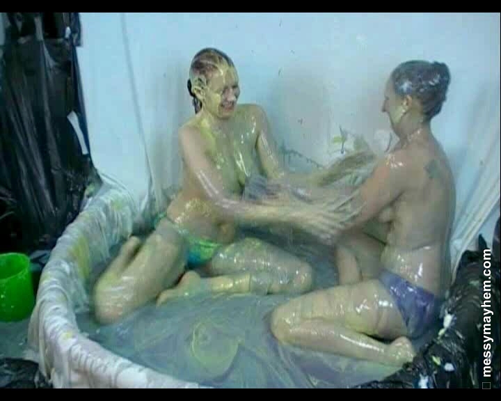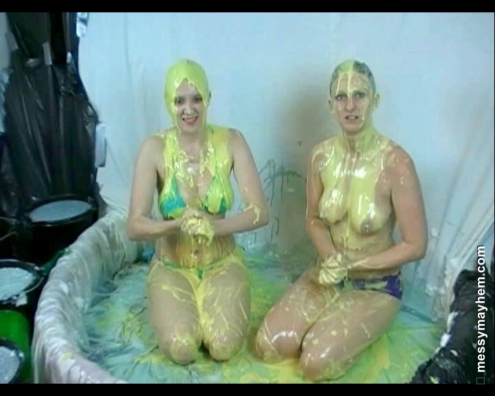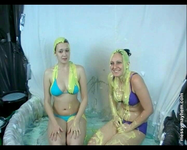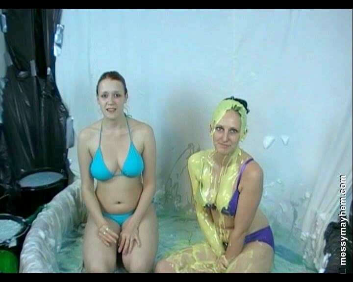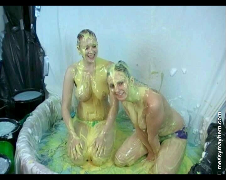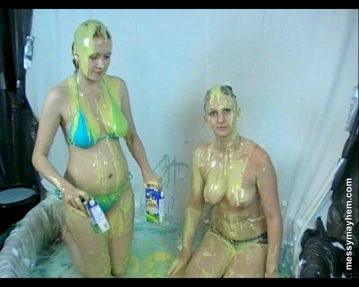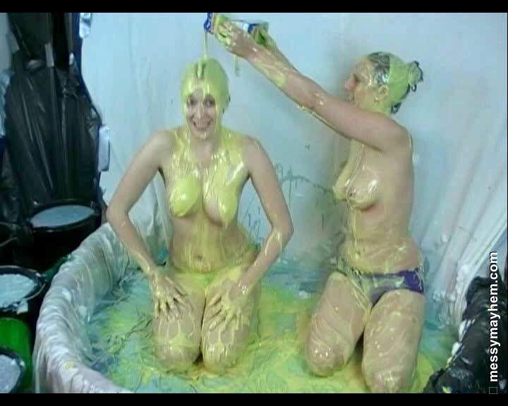 The rules are very simple a subject and letter are picked at random for instance “countries” and “A” the girl playing has to give us two countries beginning with the letter A. Easy you might say but with only 5 secconds on the clock the panic soon sets in! If they fail they get gunged, fail four times and they lose their bra and fail five times and they get all of the sloppy seconds. Messymayhem shoots usually live up to their name and this is a fine example. This video is epic and contains the following: Lots of custard, two sexy topless girls, Eden being cheeky, bad singing, Karen alleging rigging even when we try to help her, lots of cold gunge, swearing, daftness, filth, slo-mo replays and a load of very funny out takes at the end showing all the things that went wrong.