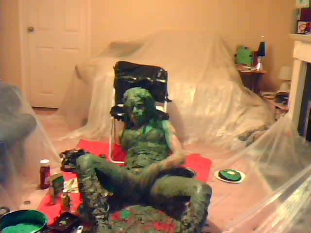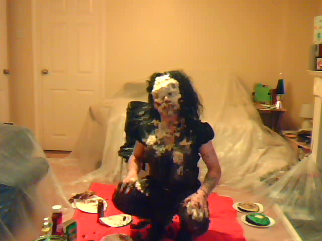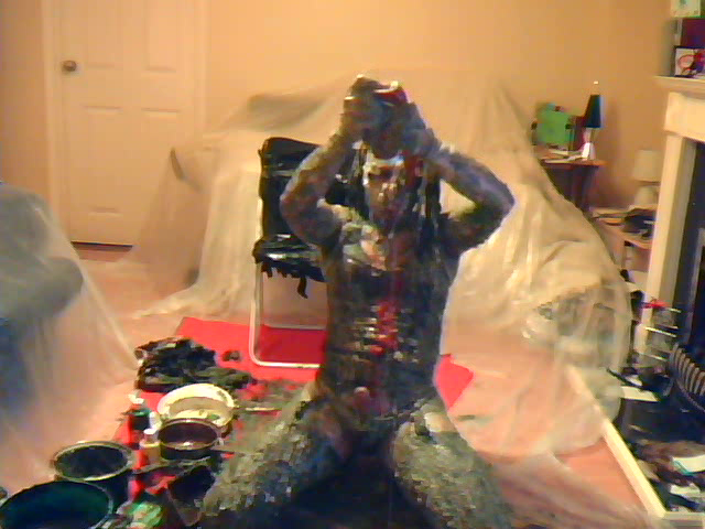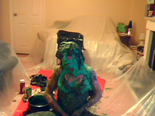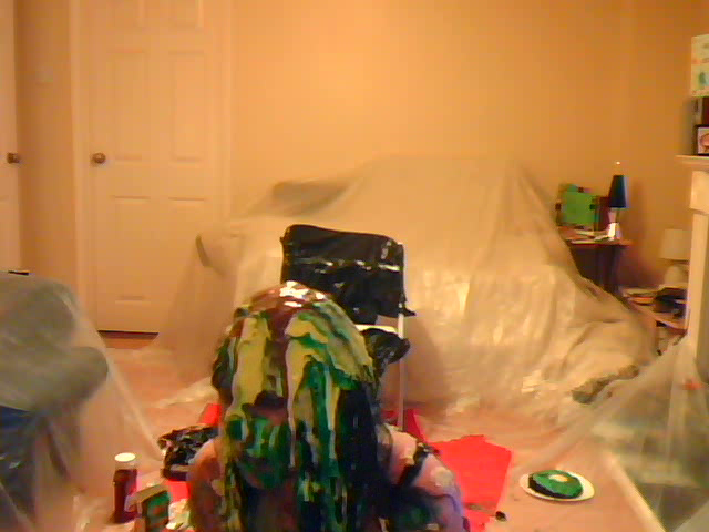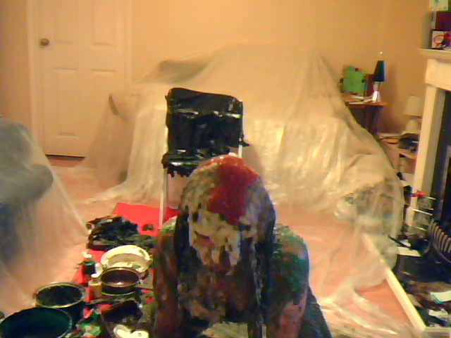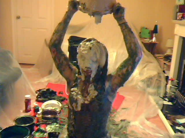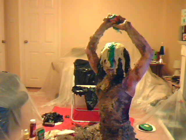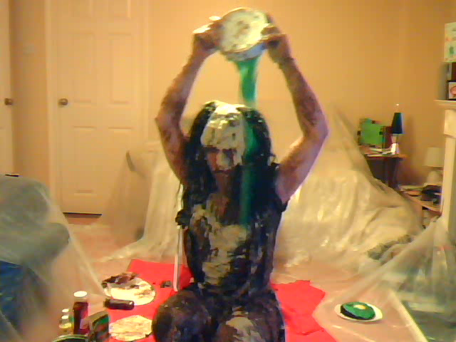 With lots of lovely thick porridge,custard,ketchup,& green & yellow paint,,& some rather delicious chocolate pies i proceeded to get myself totally messed up,,ive never used paint before & wasnt disappointed,,the feel of it running down my face was great :)