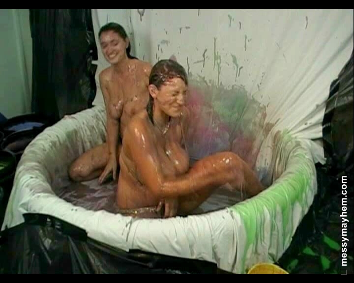3 girls in bras getting messy!! I think I need to play with myself now...