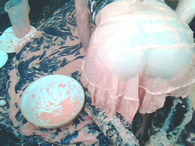 After the fun i had the night before i just couldnt resist it,so dressed in my favourite wine coloured dress,black stocking,black panties,bra & stilllettoe boots i proceed to turn myself( & half my room) pink.I change into clean clothes halfway thru,a pink skirt & black blouse,i love the feel of clean clothes over a messy body,but it didnt take long to get these messy too :)
