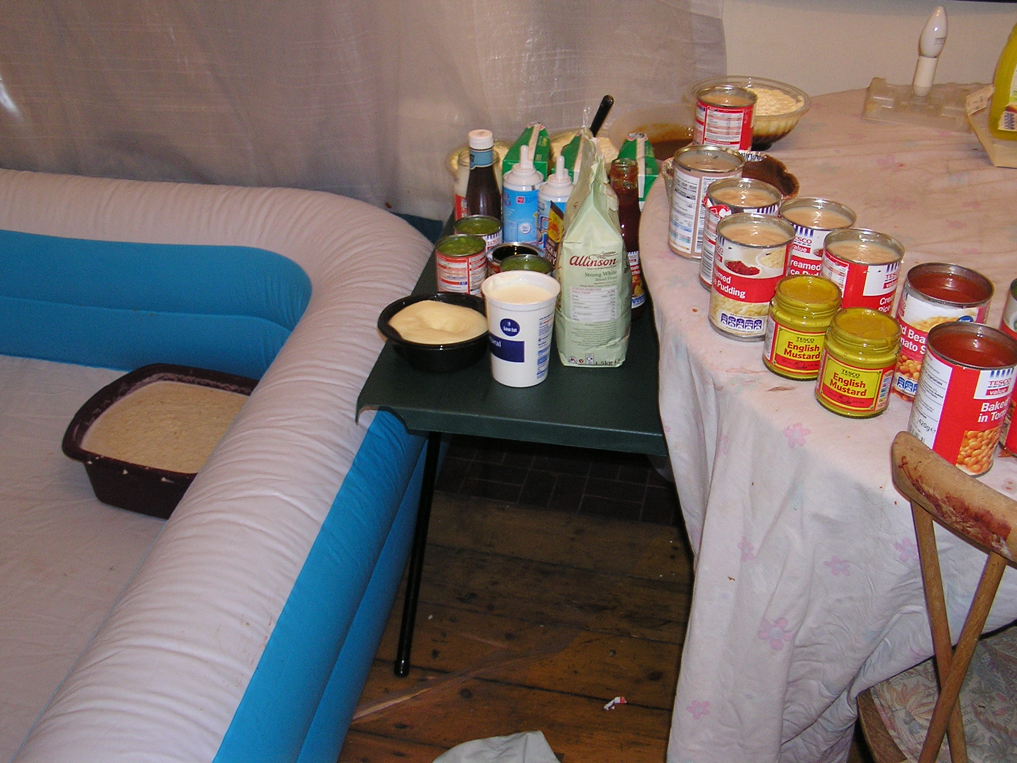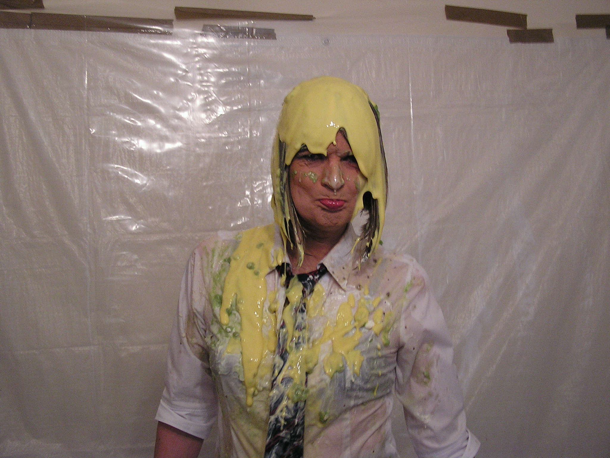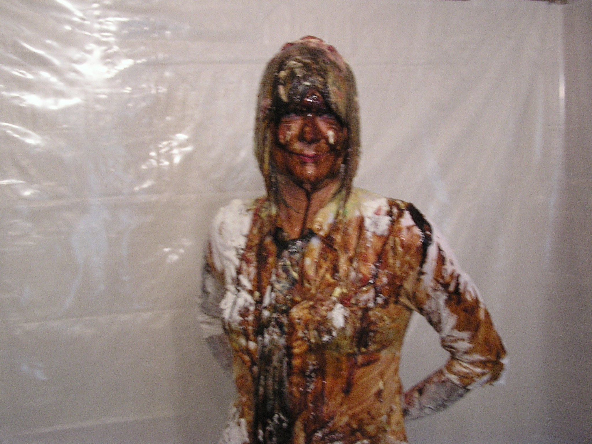 What better way than spending Easter Sunday than both of us putting on a school uniform and having a food fight with all those old school favourites--Rice pudding,baked neans,mushy peas,gravy,tomato sauce,brown sauce,mustard,porridge,flour etc etc..