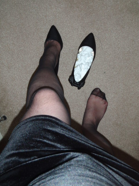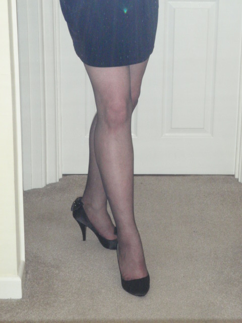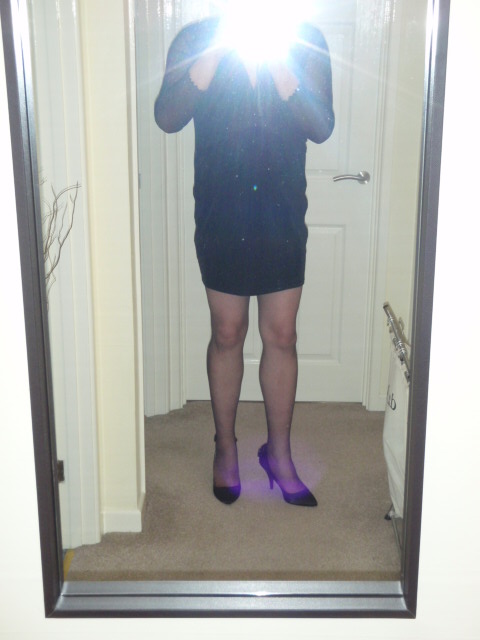 I had a play while my other half was away and tried on my new black suede dress, matching 5 Denier Black Tights, and new Black Velvet Heels.