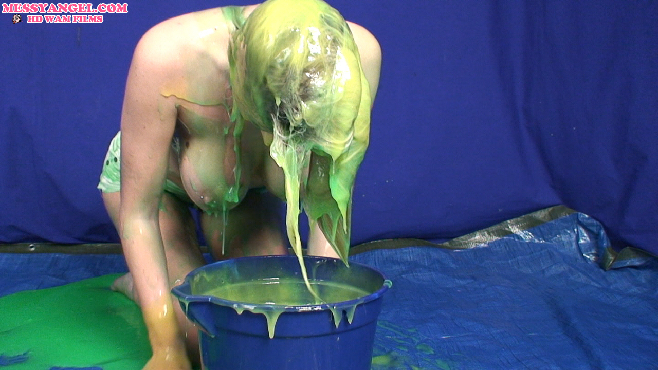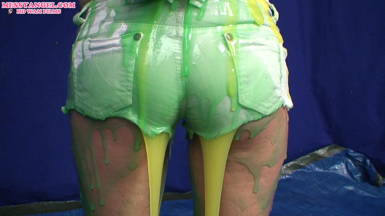 Come on in and take the plunge as Danielle Maye dressed in boob tube and very short sexy white shorts dives head first into the green and yellow gunge for some sexy, sensual fun.