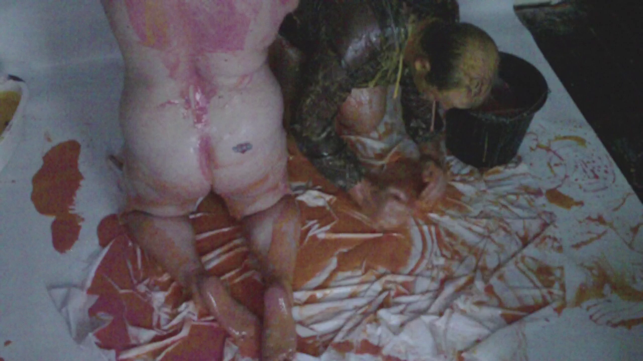 Another set of personal wam pics here, from my recent wam adventures with Martin... he we shackle, tie and gag each other before headunking in gunge, I am tied behind my back with rope, wearing my black pvc dress and then Martin gets his turn in a PVC raincoat and plastic pants (which also got filled!) and he is handcuffed behind his back plus tied at the elbows with rope too (just to make sure
