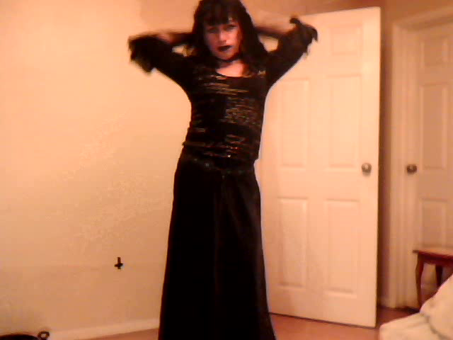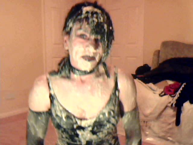 Well it was the First of the Biannual Goth Festival in Whitby at the weekend,unfortunately i couldnt go,so decided instead to hold my own.Dressed in a floorlength Black dress,top,Black stockings & boots & playing some great tunes I did start by dancing around,arms waving .I reach for the yoghurt & smear it all over my lovely black top,After making sure this is all rubbed in nicely i reach for the Porridge,as we know,all Goths love porridge
