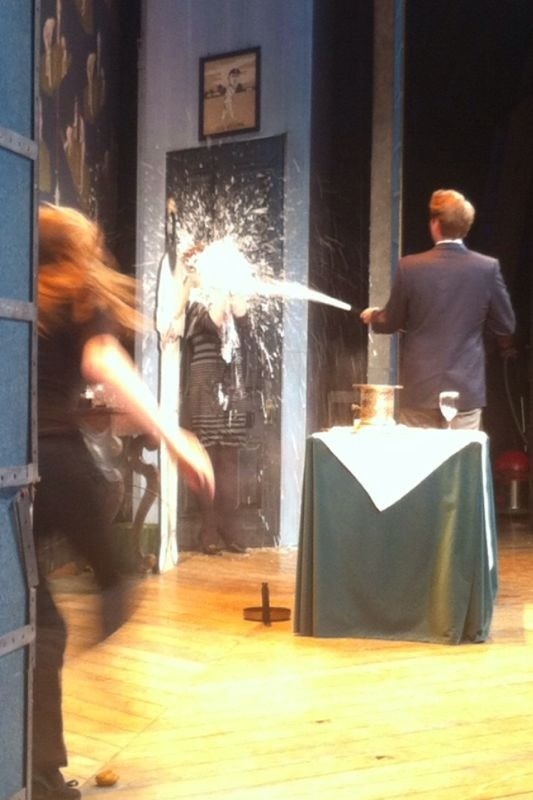 Not the best quality vid but you can get the theme. Actress, pretending to be from the audience has water thrown over her and then foamed down. Awesome scene especially as its live! The actress is back on stage at the end for the curtain call.