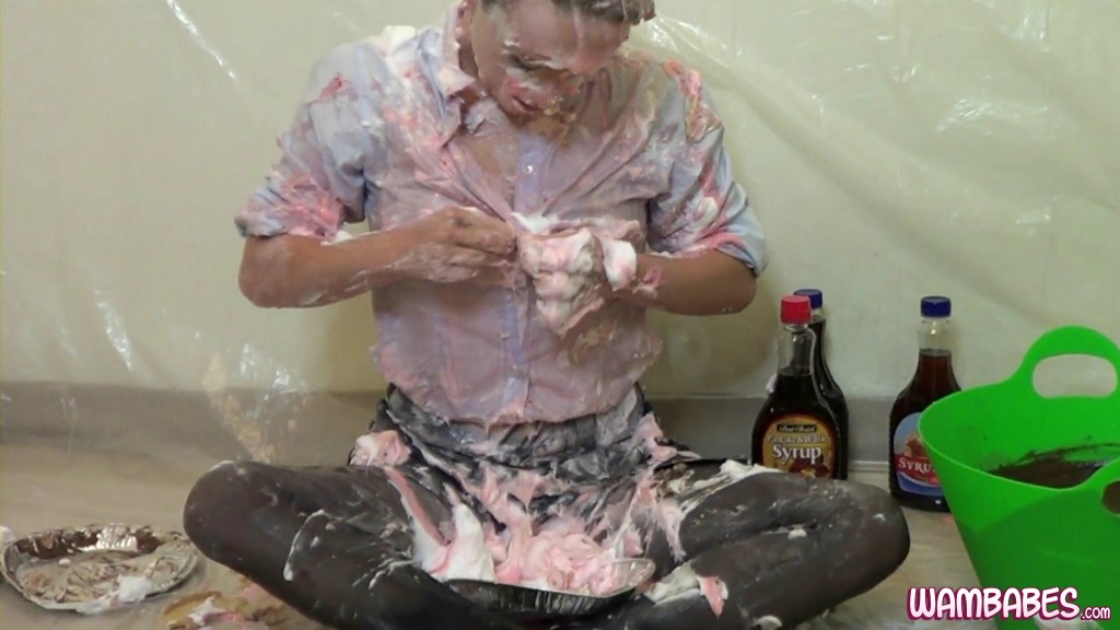 I love this video! Jilly first puts a big fluffy pie on the floor and plants her face into it, then a self pie, a pie sit, another self pie, some syrup, some pantyhose filling, another self pie, batter pantyhose filling, some batter over the head......you get the picture! :mrgreen: