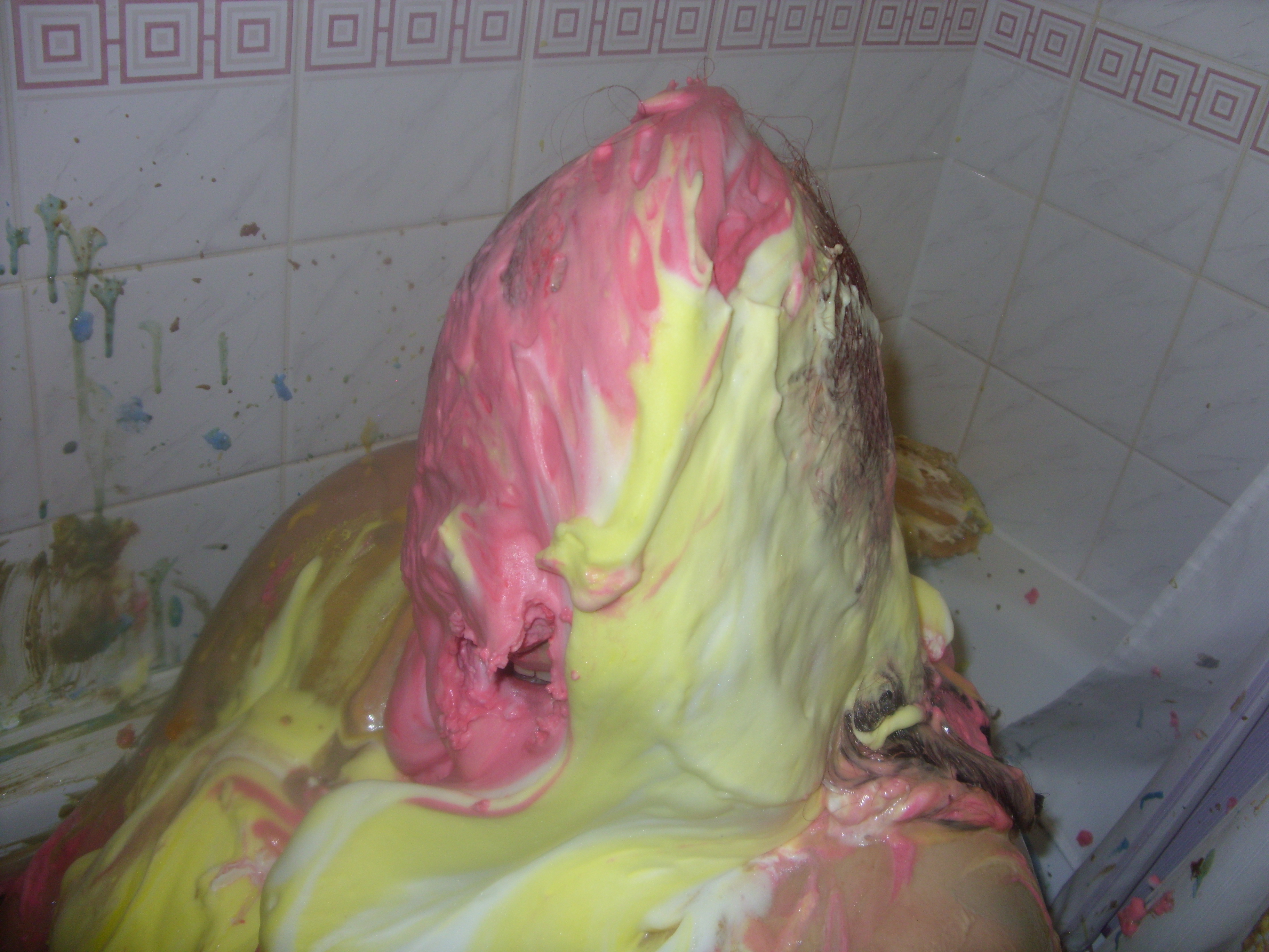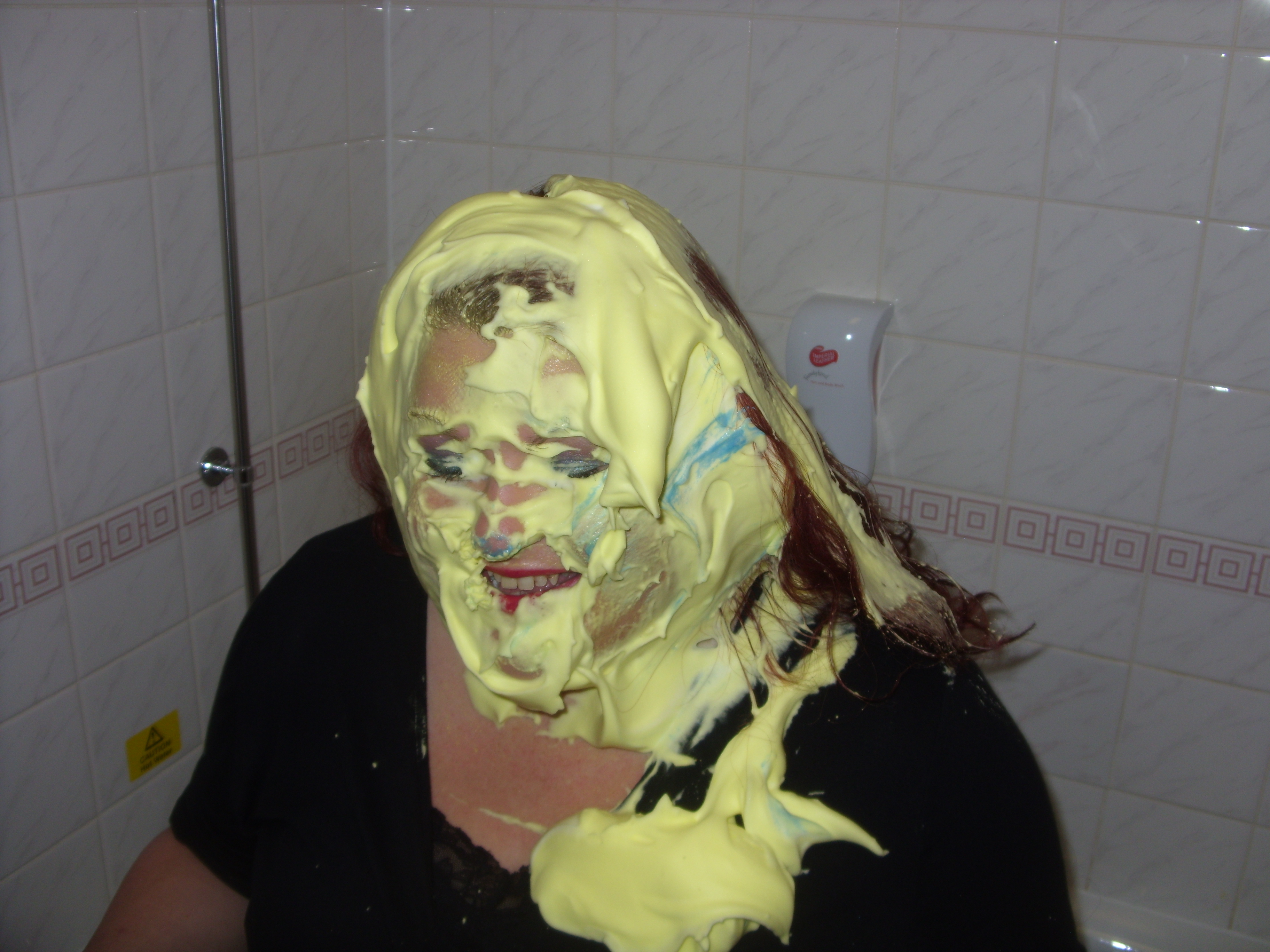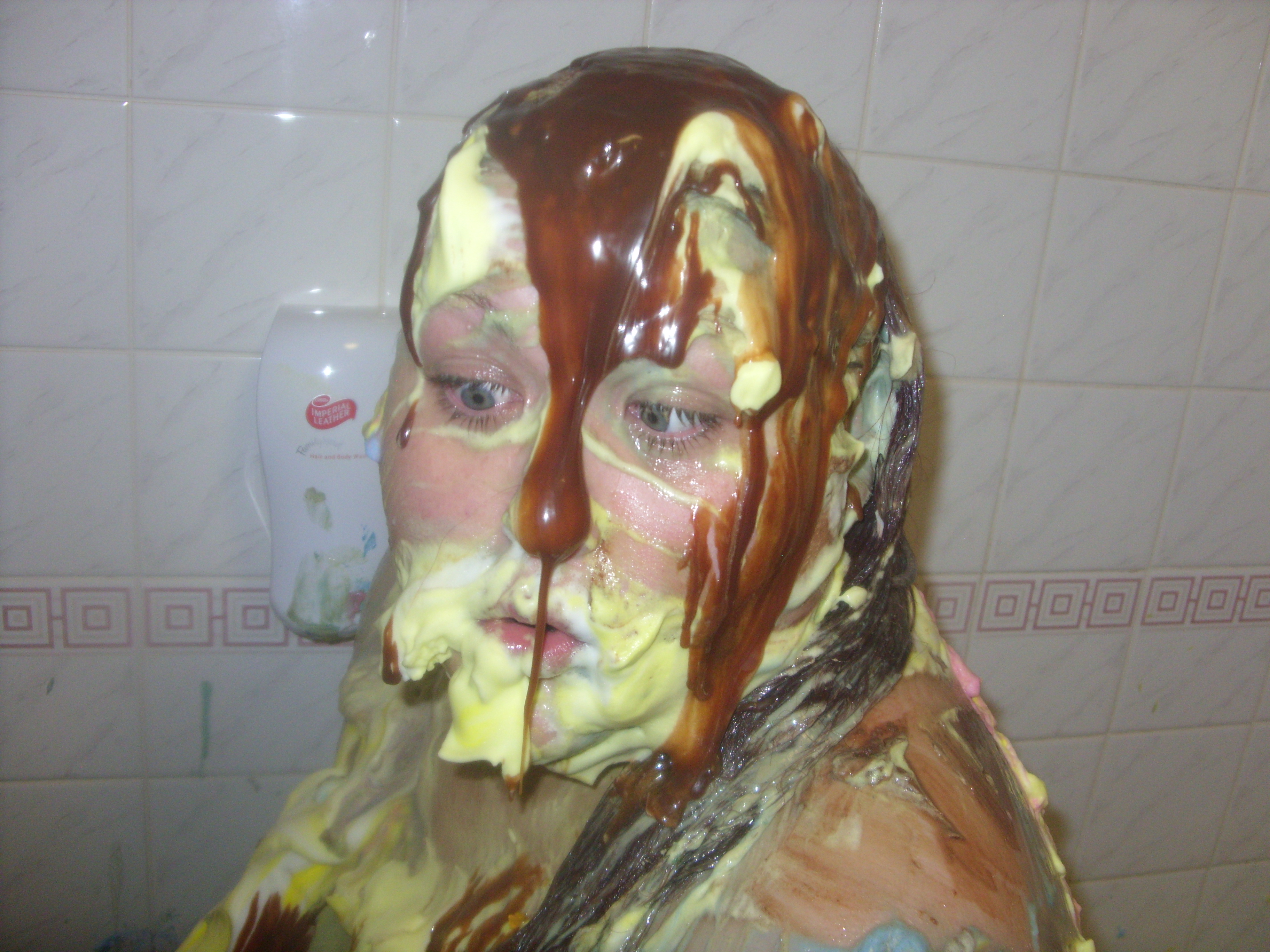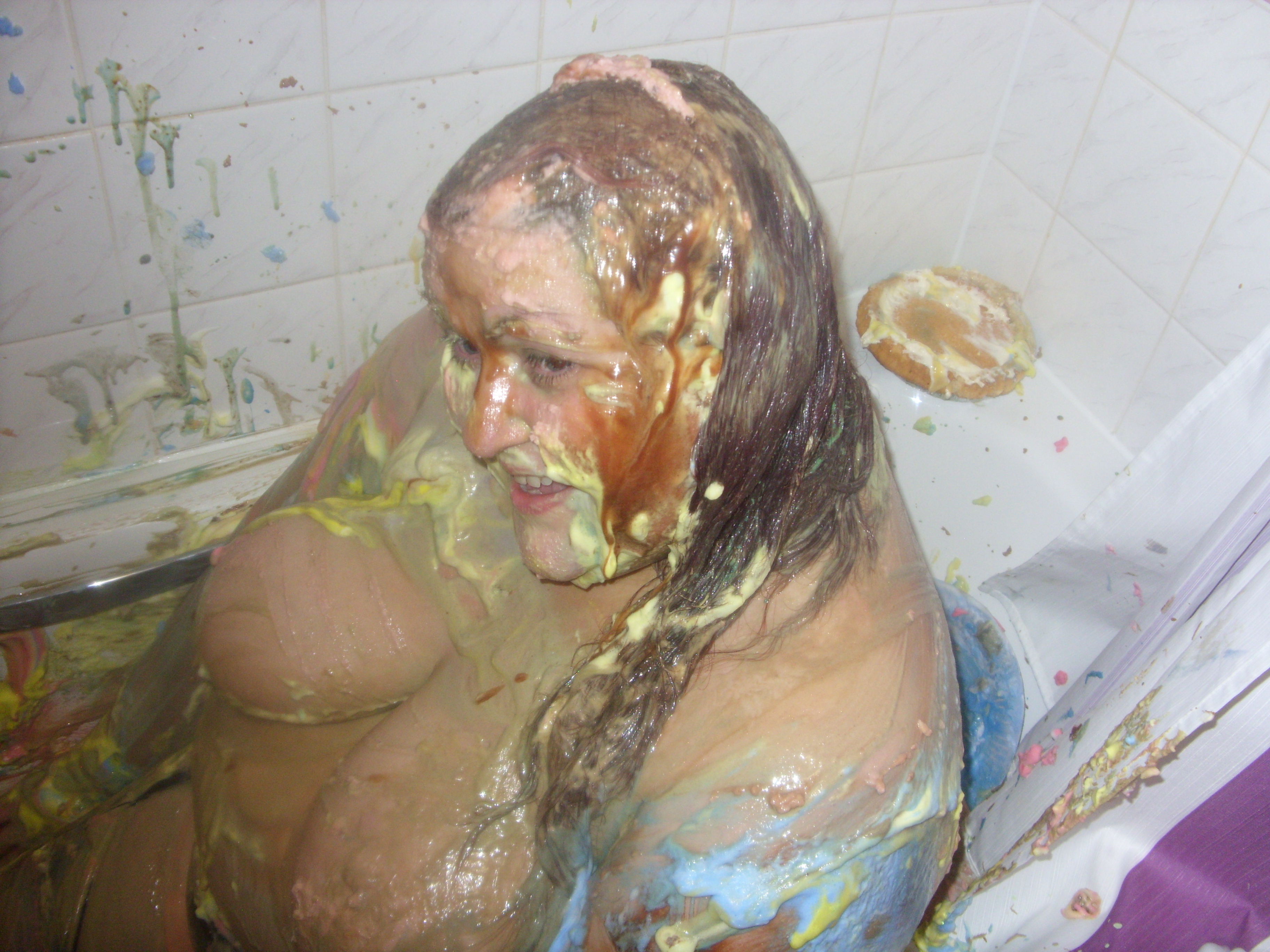 Take one buxom BBW and a splosh virgin, who wants to "pop his wam cherry" by trashing a lovely lady. Take them to a local chain hotel and add some lovely sweey and messy goodies - copious amounts of coloured foam, dessert mix, custard (of course), jelly, cream and a whole lotta other messy stuff. Apply liberally to said BBW in any fashion you see fit - pies, slime, over the head, down the cleavage (you get the idea) and mix it all together in the bath tub - Enjoy!!! :P