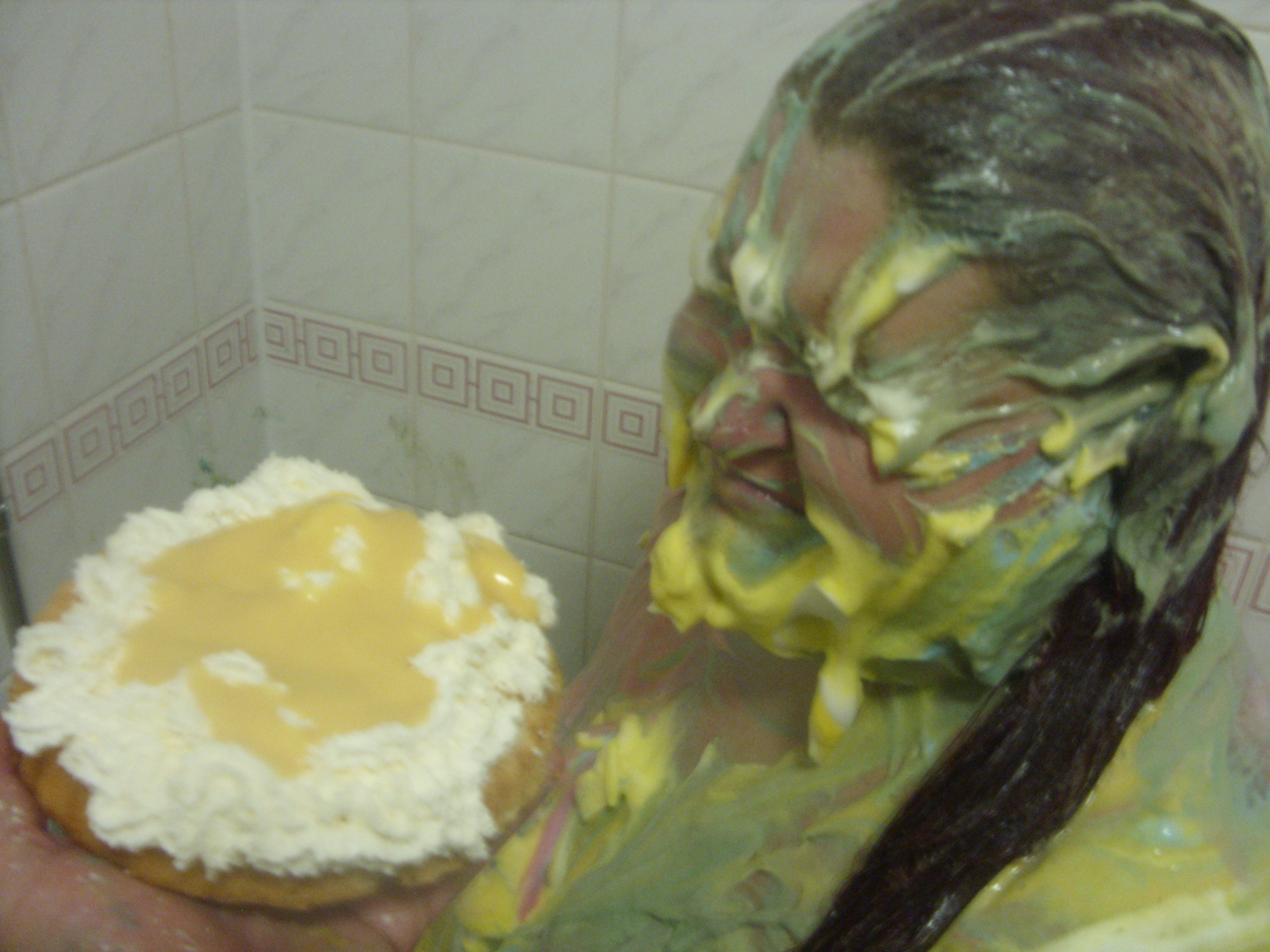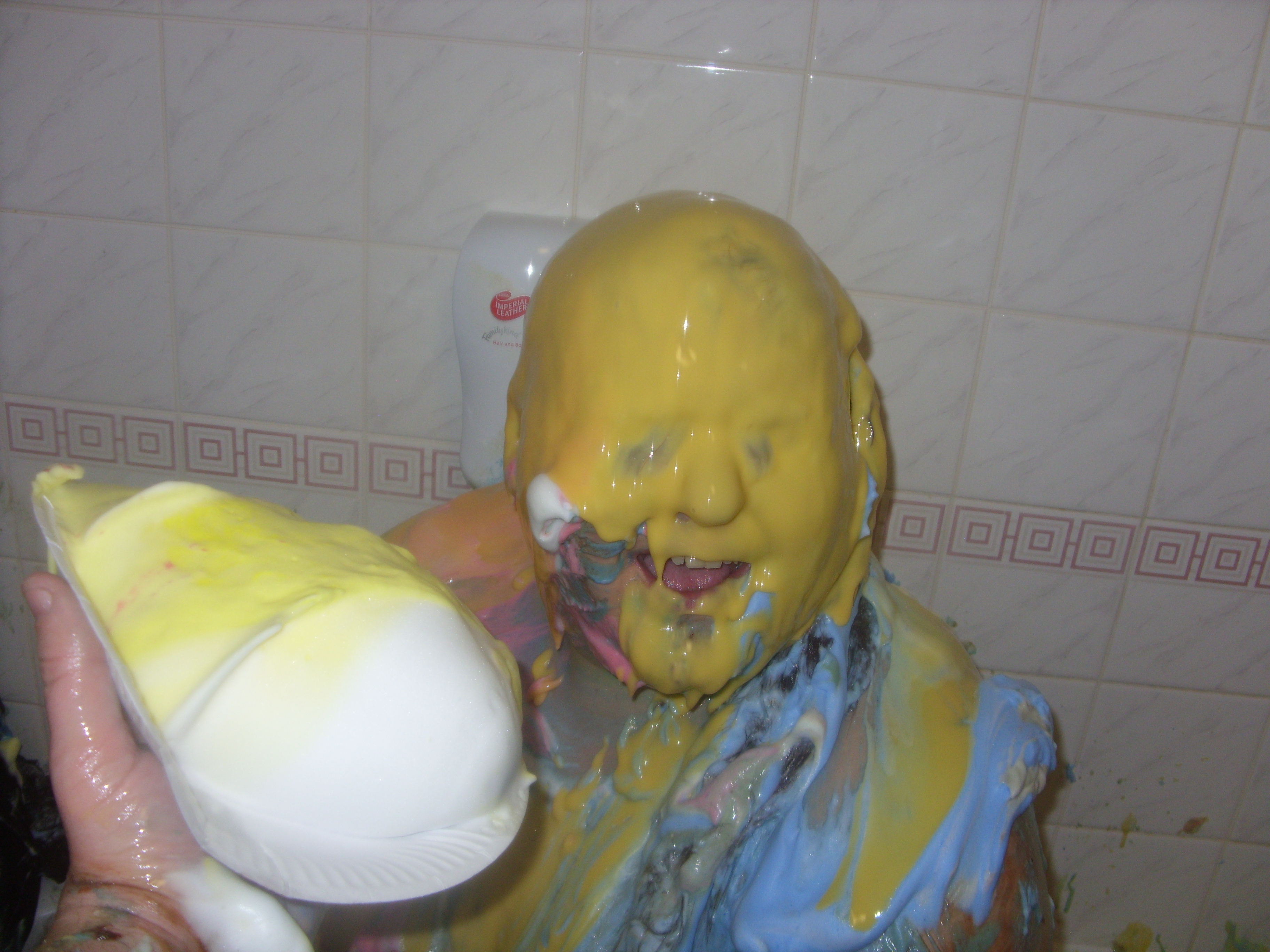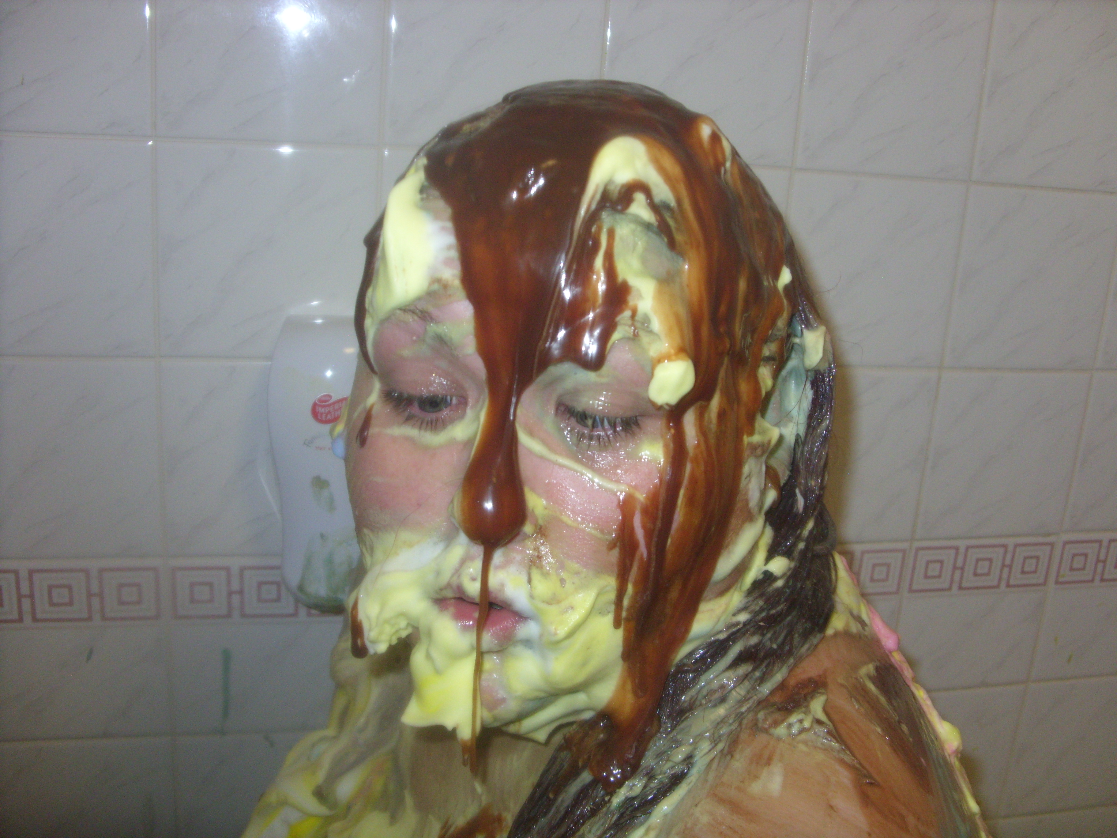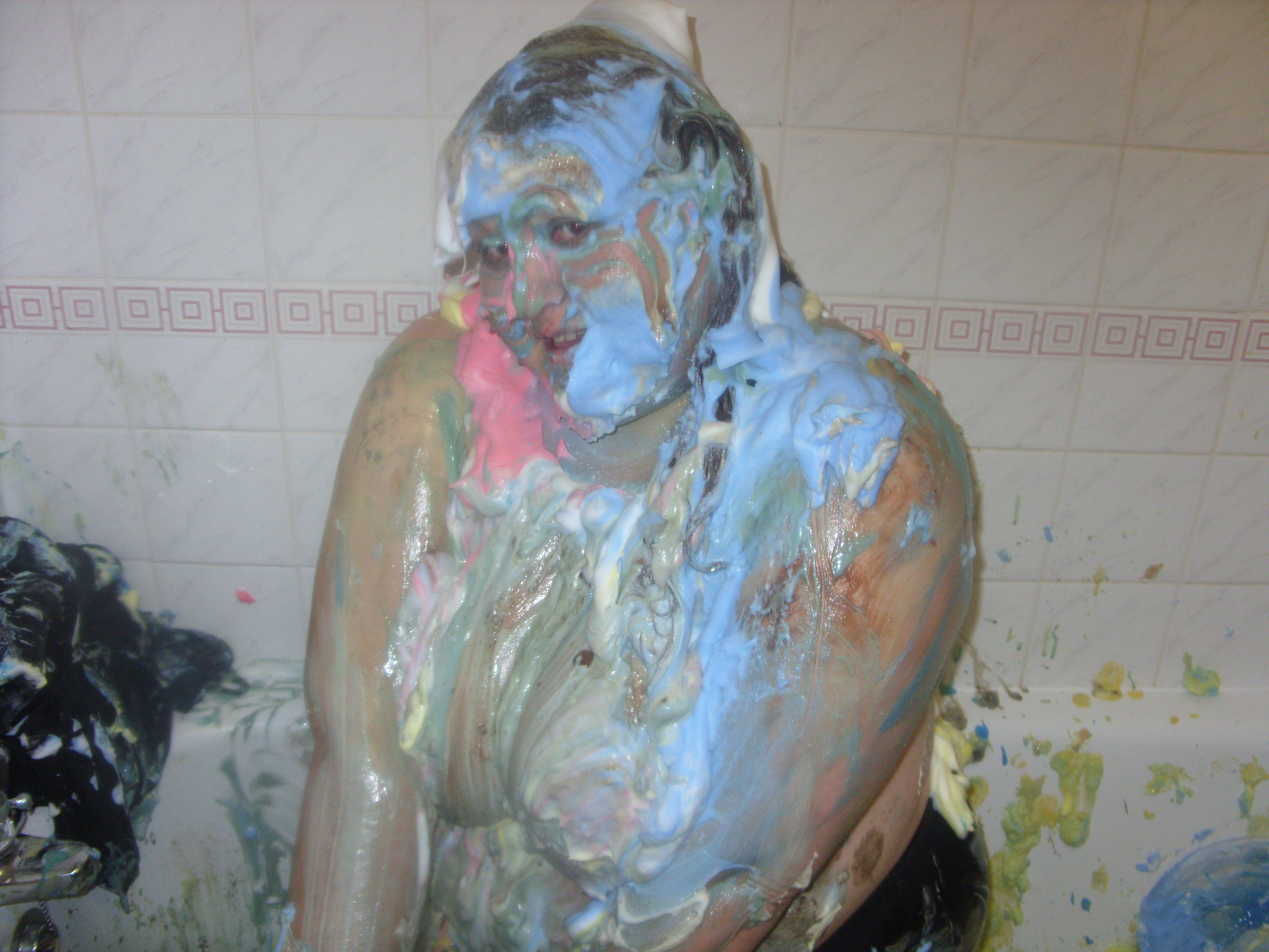 Take one buxom BBW and a splosh virgin, who wants to "pop his wam cherry" by trashing a lovely lady. Take them to a local chain hotel and add some lovely sweey and messy goodies - copious amounts of coloured foam, dessert mix, custard (of course), jelly, cream and a whole lotta other messy stuff. Apply liberally to said BBW in any fashion you see fit - pies, slime, over the head, down the cleavage (you get the idea) and mix it all together in the bath tub - Enjoy!!! :P