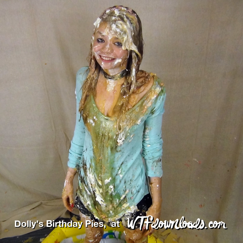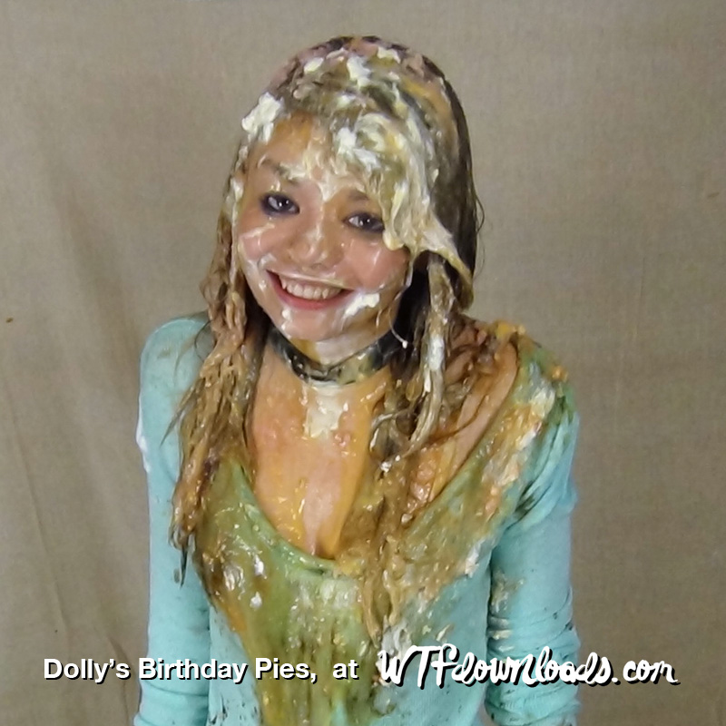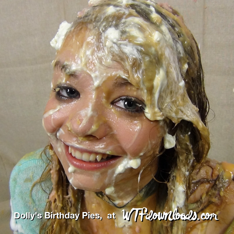 Lola's been pestering me to get some of her friends in for a shoot, so last week she brought Dolly along at the earliest possible opportunity to get messy for the first time, and the first thing we shot was a kind of initiation for Dolly – a bit like my A-Z clips, this is 18 different types of pie to celebrate Dolly's 18th on that day! Most in the face, a couple on the bum.