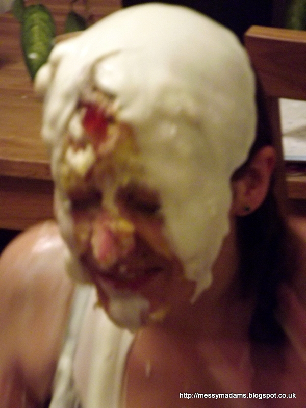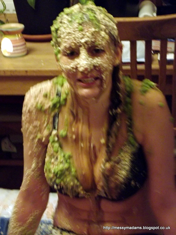 Now whilst Maddie was messing Jess she realized that these would only be good instructions for sweet mess lovers so Maddie walks into the kitchen and finds a big bucket of mushy peas and pours them all over Jess