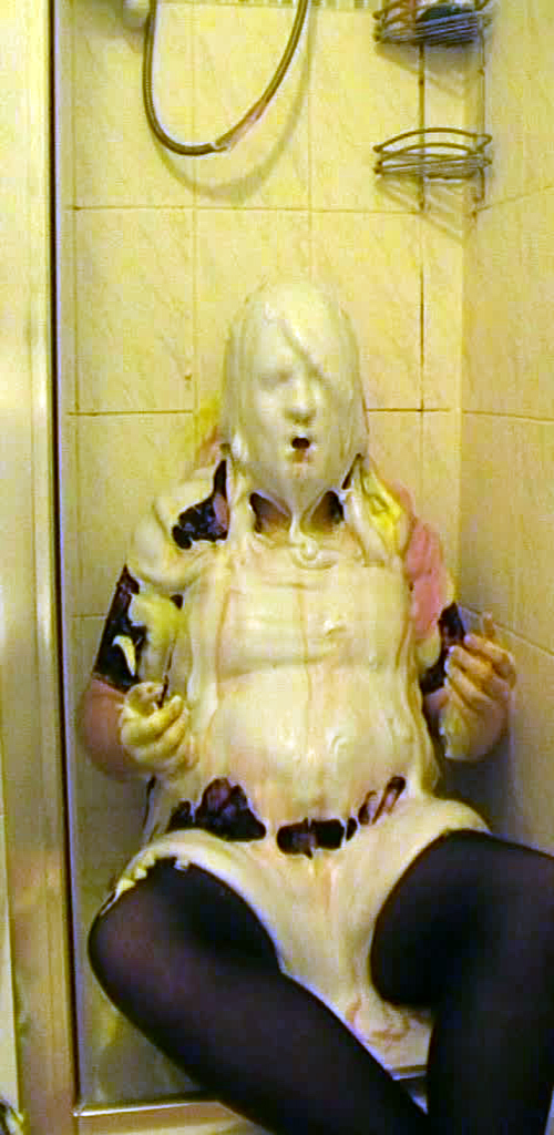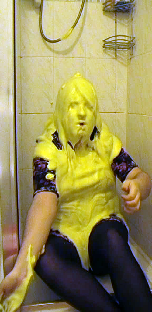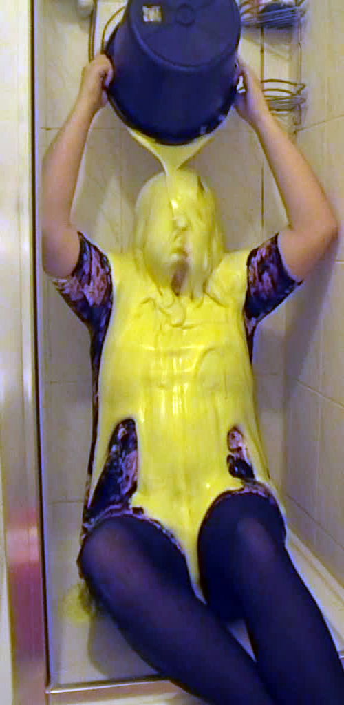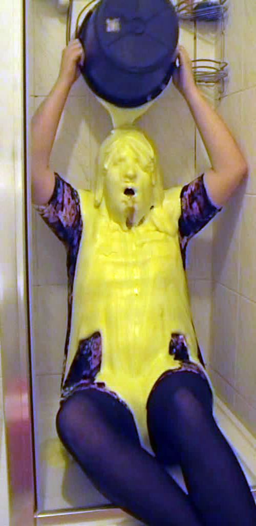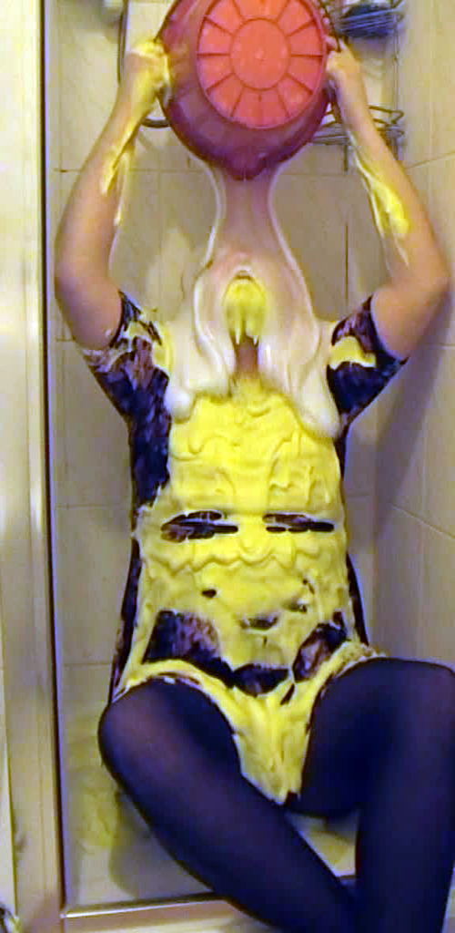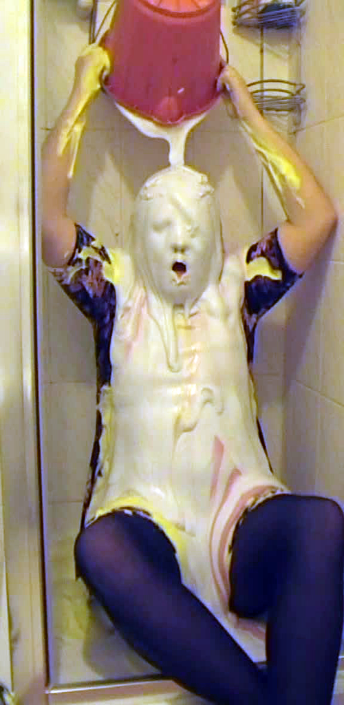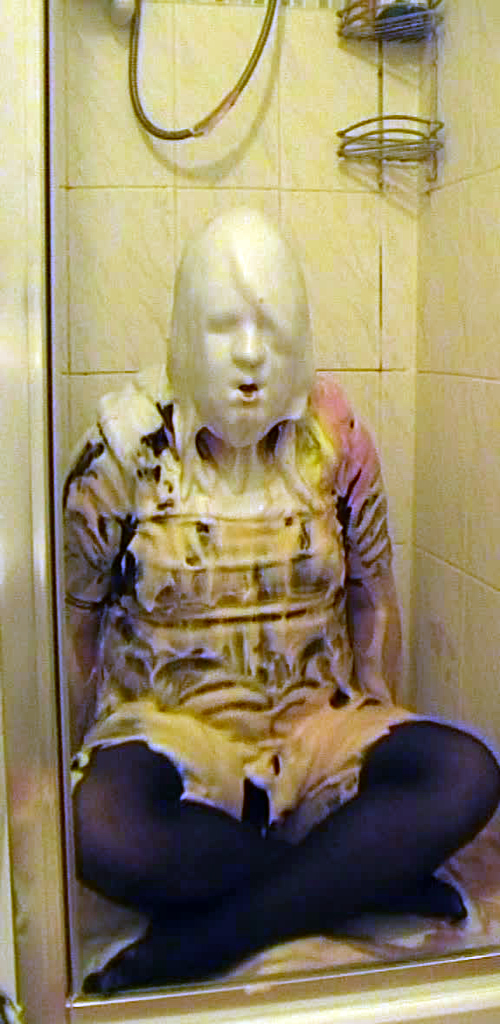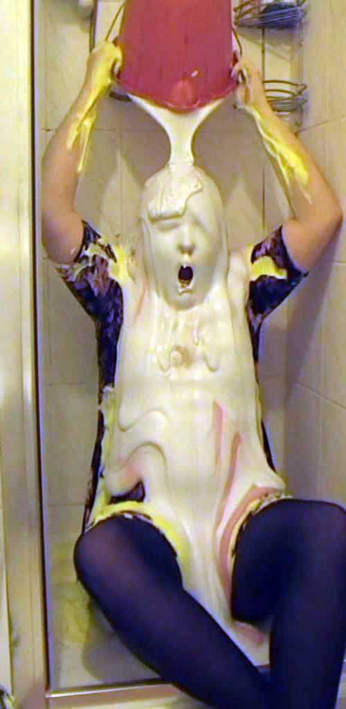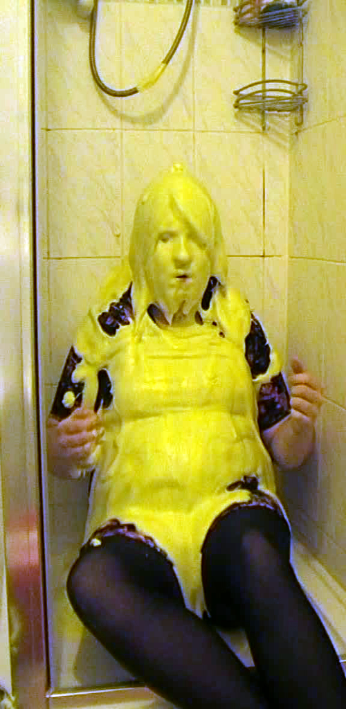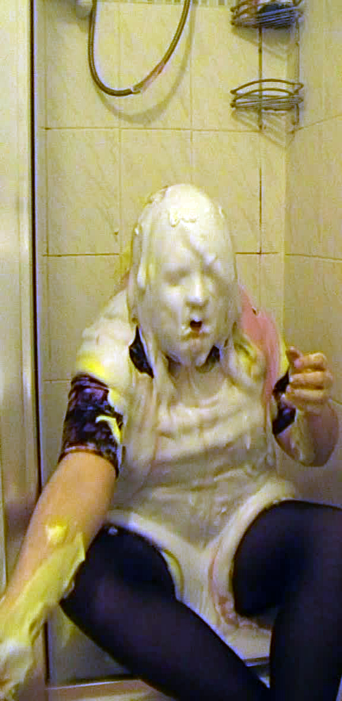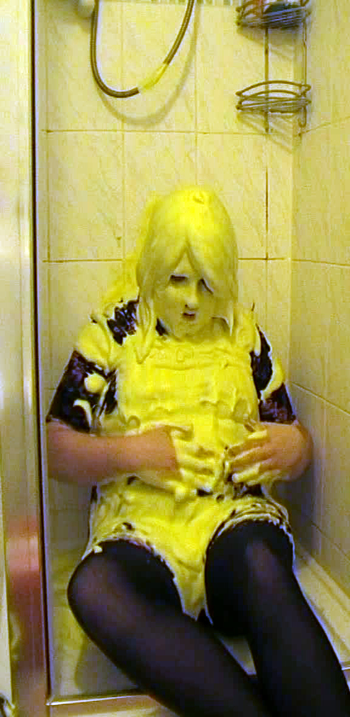 Wow; what a fantastic sesion. Your dress was so pretty at the start of the sequence; it seemed to wash off OK after being smothered in gunge. I hope it survived.