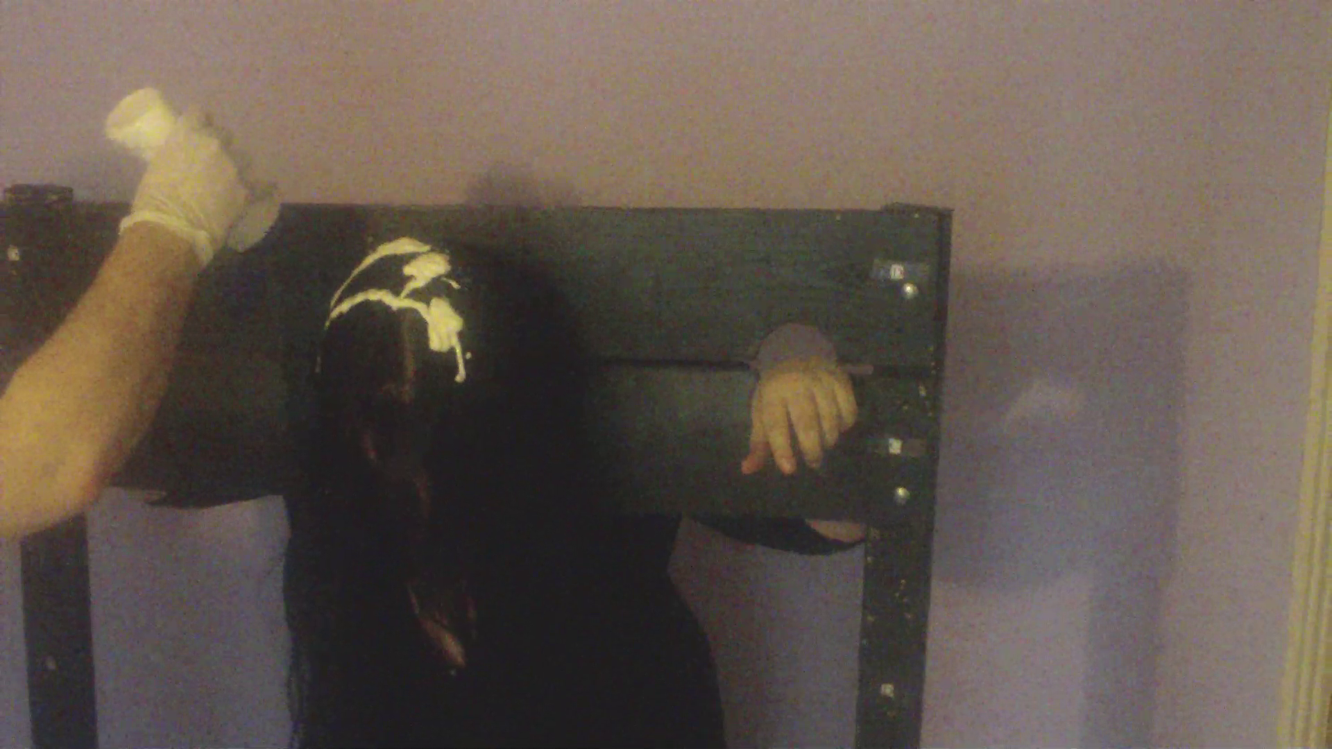 I was put in the pillory and covered in all kinds of stinky gloop! Thankfully after a while I was allowed out but my messy fate still wasn't over...