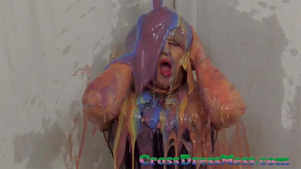 love the multi-coloured gunge and the outfit. I love formal dresses and mess.