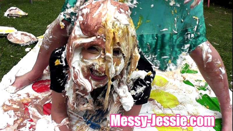 Miah and I play Twister, but with pies!! On some of the circles are pies and if we land on a circle with a pie, we get a pie in the face! I was doing well, but then it all ended up a big old mess!! This was so much fun, I would recommend it for any party!! Anyone else want to play?!