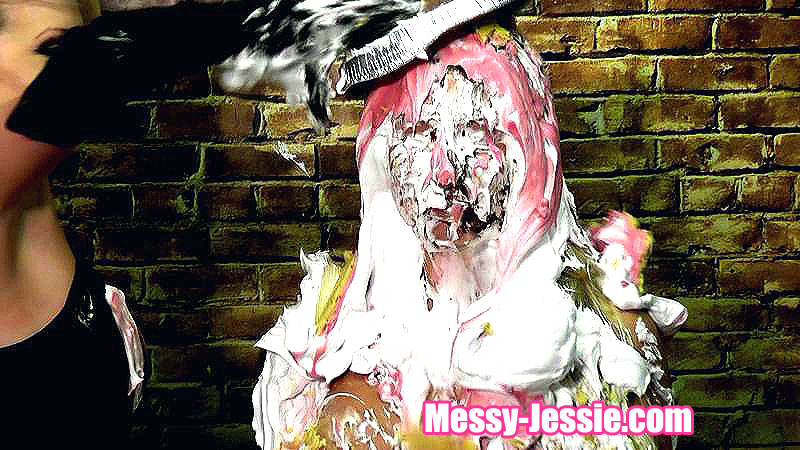 I get her in handcuffs and tease her with the pies before actually pieing her. After 2 pies, I take off het bikini top so I can pie her big boobs properly! I get Kelsey covered in pie and feel quite pleased with my effort... But naughty Kelsey throws some of the pie at me! So I don't get a clean get-a-way!