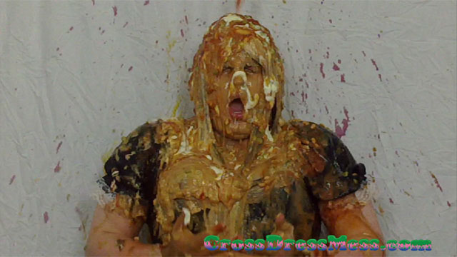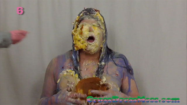 CDM 003: Elise in her French Maid uniform messes up my dinner party by serving the courses out of order so I decided to serve up my own meal on her in reverse order. Ten pies, loads of food, the chef's special Seven Layer Drip and a Yuck Bucket are all served up to her. (PS. The first person to guess the seven layers in the seven layer drip I will send a free video clip to so long as they get the answer before I have to give the web accounts back to Elise at the end of Monday).