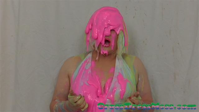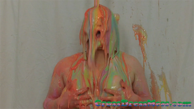 CDM 001: I gunge Elise in a long black evening dress with loads of rainbow themed slime and water.