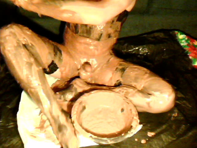 So after last nights messy fun,i found myself left with this large bowl of chocolatey foamy stuff ,so not wanting to let it go to waste I put it to good use,mainly smearing it into my stockings & thong,,,needless to say it had the desired effect