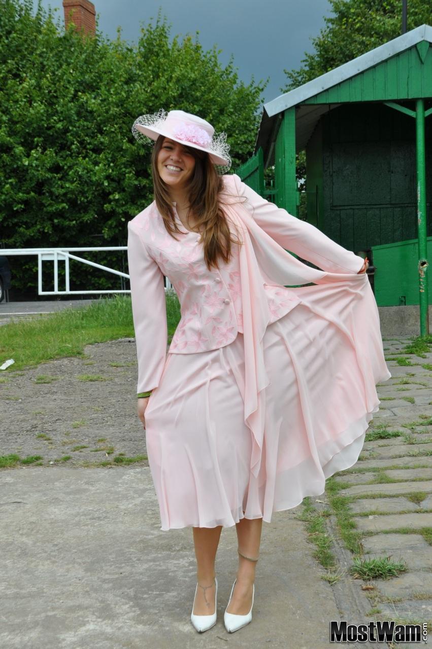 She opened her wardrobe and removed her outfit from the hanger. It was a lovely pale pink two-piece Frank Usher skirt suit. She had bought for a wedding a few months ago and it had cost a fortune. It consisted of a pink silk collarless georgette jacket with a v-neck, pearl buttons and sheer embroidered sleeves. The jacket was embroidered with seed pearls and sequins. The skirt was a long pink calf length flowing chiffon skirt with a silk lining. She carefully stepped into the skirt then hitched it up to fasten it at the side. She then put on the jacket, gently placing each of her arms into the sheer chiffon sleeves. She pulled it over her shoulders, straightened it out and looked in the mirror again. "Very nice" she thought. "I can't see myself wearing this in the future so I may as well give it a good send off." She then sat down and put on her very expensive pink satin sparkling heels. They were also decorated with diamantes. She then opened a hat box and gently pulled out a very posh pink organza formal hat. It was decorated with a few feathers and an organza bow. She carefully placed it onto her head and with a large spray of Channelle no. 5, she was ready. She picked up her matching pink satin purse from the bed, looked into the mirror once more then came downstairs.