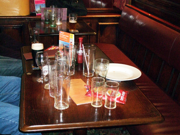 Unfortunately (though I respect their right to privacy blahdeblah...) it seems gritty northerners are too camera-shy to appear here (for any IC members reading this, that was a joke not an insult). But to prove that there were people there, that they ate and drank (including Guinness), here's a picture of the tables they sat at instead.
