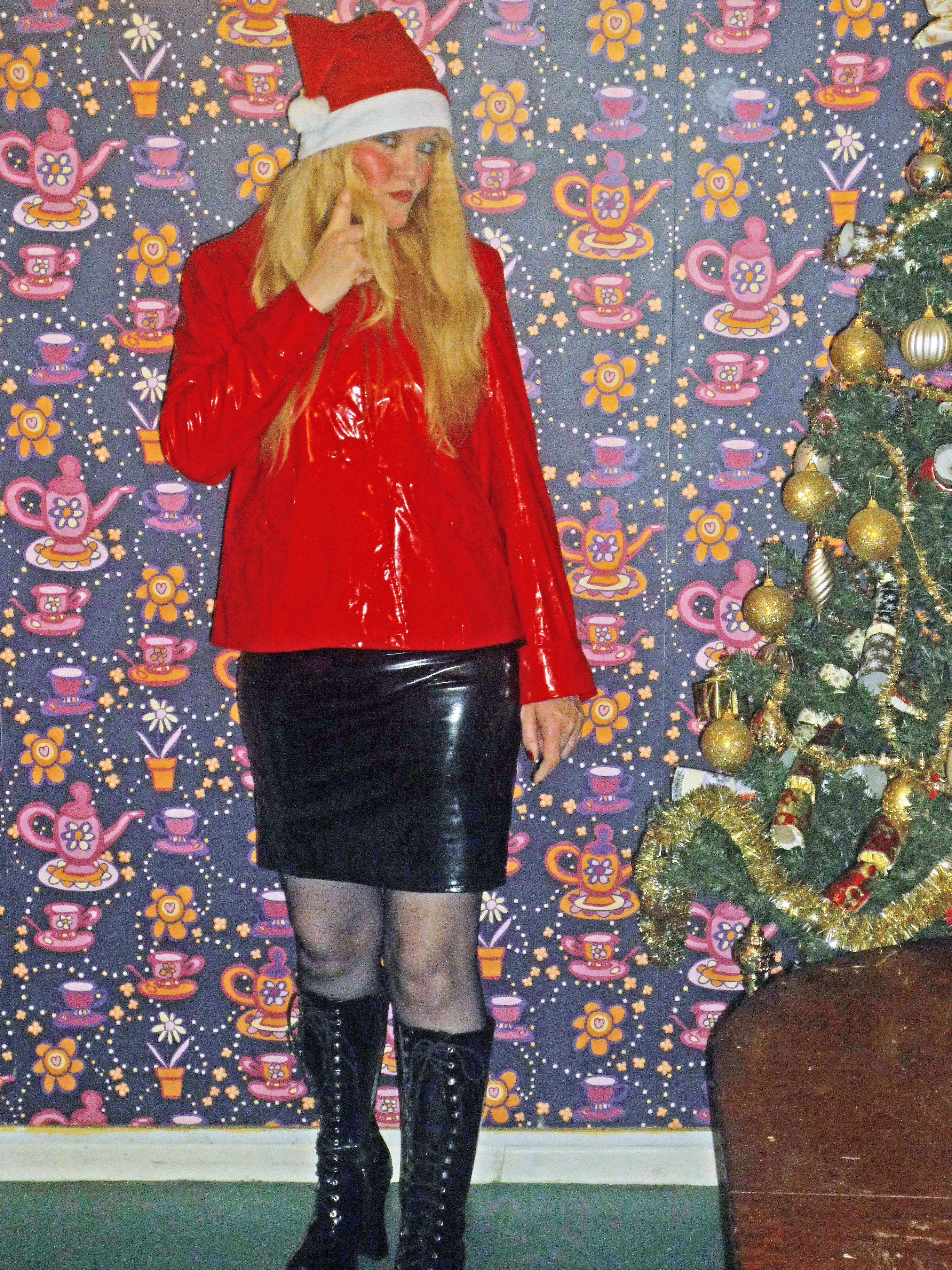 Wow you look so sexy in that christmas pvc outfit! Pvc looks sooooo good on you!